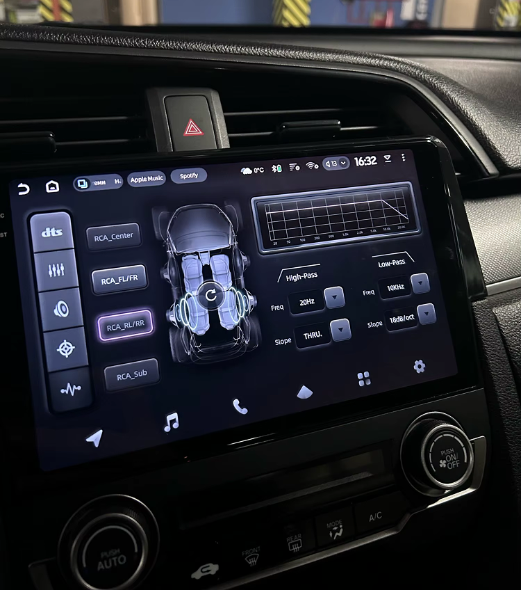 Производитель использует только современные технологические и программные решения, что не заставляет ждать результатов. Новинка компании получила объемный звук с широкими возможностями настройки. Любые помехи или задержки в работе магнитолы исключены. Звуковой чип DPS Adau1701 в сочетании с Rohman32107, подключение посредством оптоволоконного кабеля цифровых выходов — все направлено на превосходный звук.