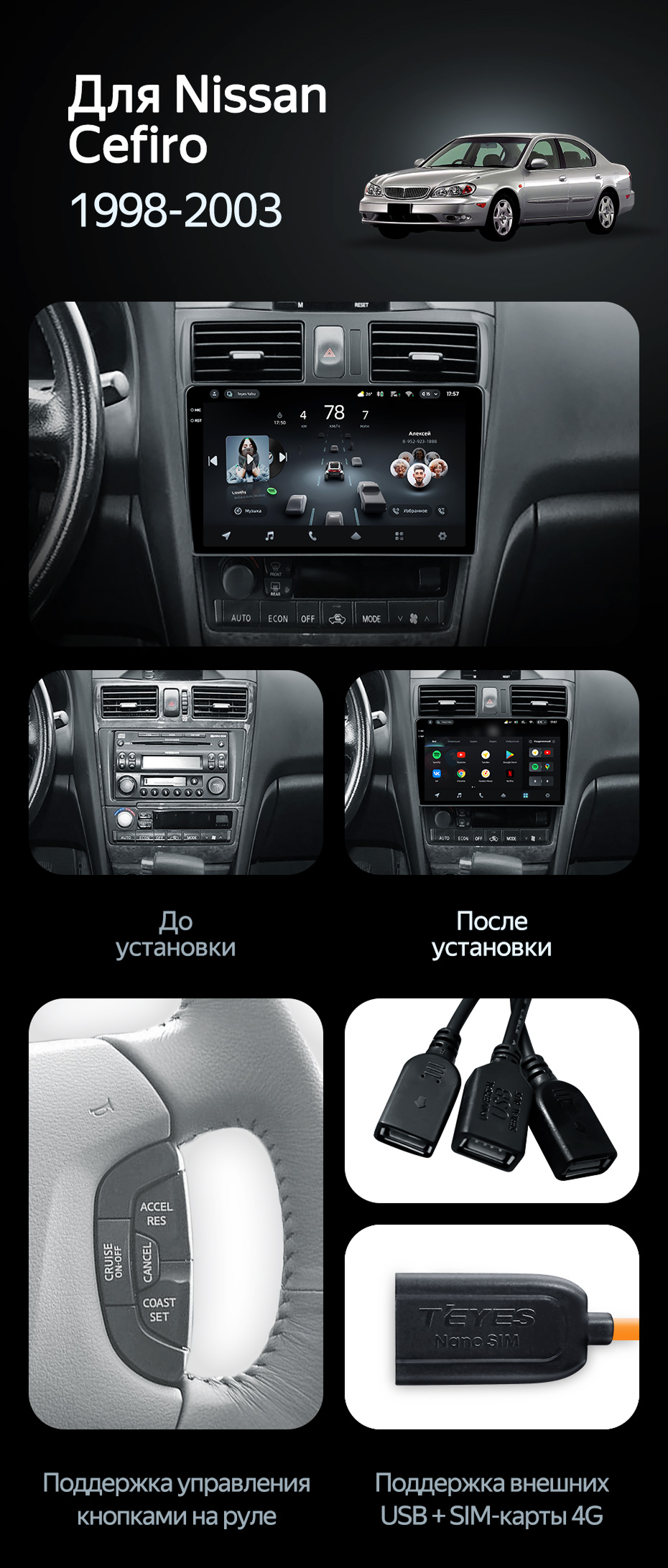 Штатная магнитола Teyes CC3 2K 4/32 Nissan Cefiro 3 A33 (1998-2003) F2 - купить всего за 39 400 руб. в интернет-магазине в Ставрополе Teyes.com.ru. ✓ Самый лучший выбор мультимедиа ✓ Лучшая замена штатному ГУ ✓ Тел. +7 (800) 775-31-74