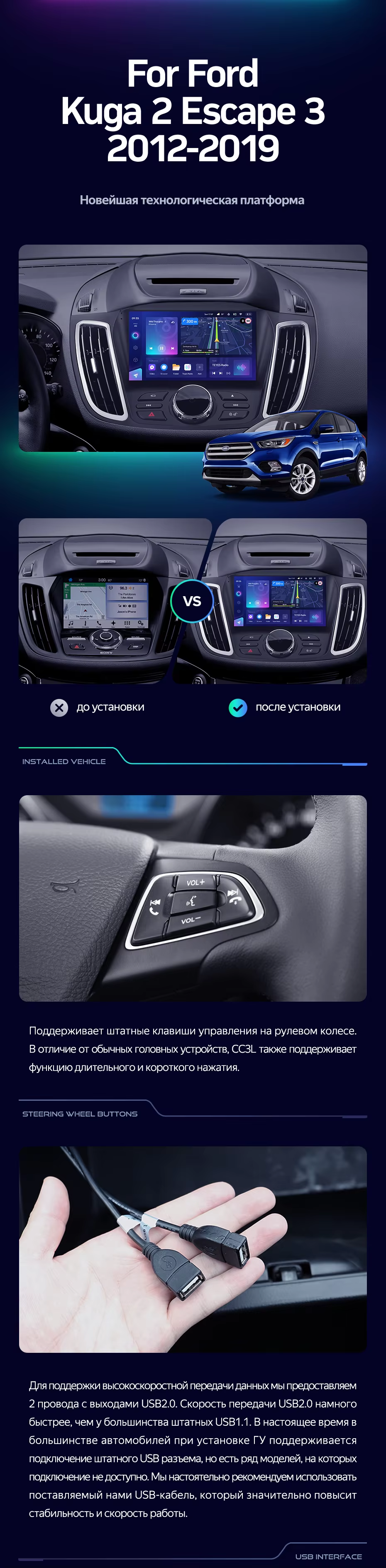 Штатная магнитола Teyes CC3L 4/32 Ford Kuga 2 (2012-2019) Тип-B - купить всего за 32 000 руб. в интернет-магазине в Ставрополе Teyes.com.ru. ✓ Самый лучший выбор мультимедиа ✓ Лучшая замена штатному ГУ ✓ Тел. +7 (800) 775-31-74