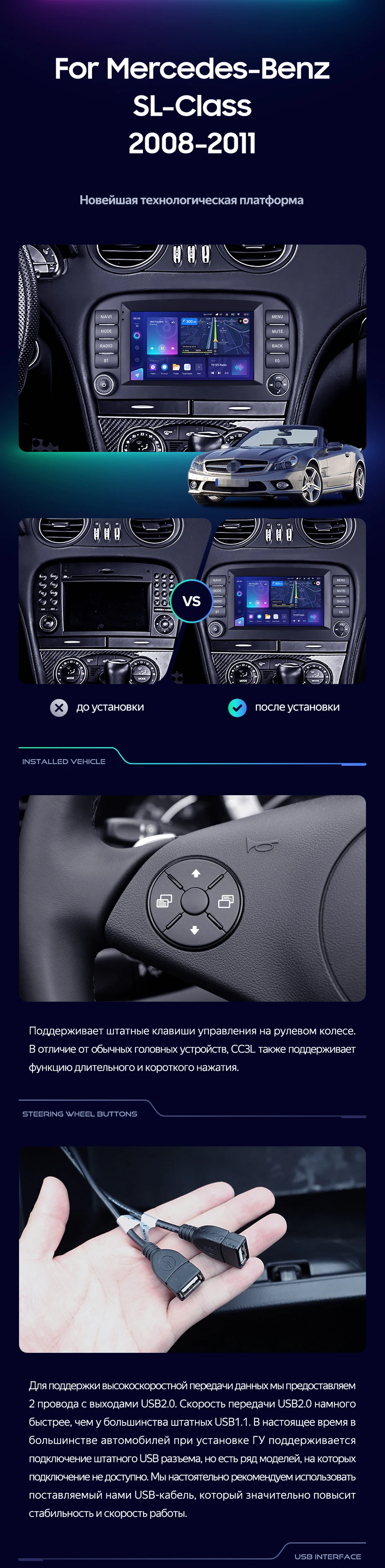 Штатная магнитола Teyes CC3L WiFi 2/32 Mercedes-Benz SL-Class R230 (2008-2011) 7" - купить всего за 13 900 руб. в интернет-магазине в Ставрополе Teyes.com.ru. ✓ Самый лучший выбор мультимедиа ✓ Лучшая замена штатному ГУ ✓ Тел. +7 (800) 775-31-74