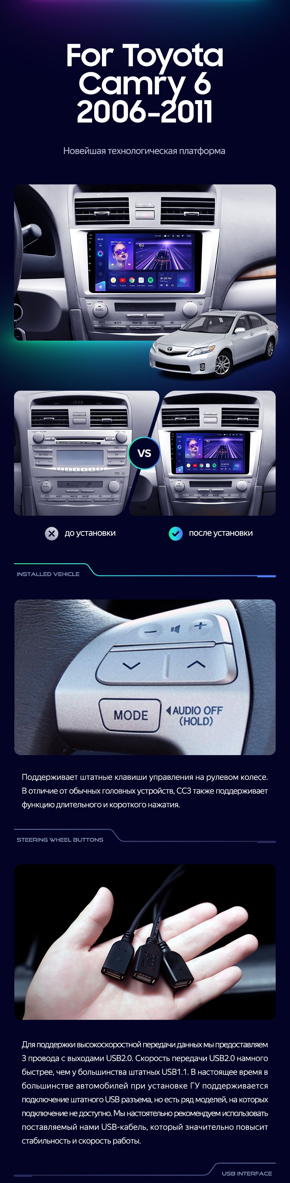 Штатная магнитола Teyes CC3L WiFi 2/32 Toyota Camry 6 XV 40 (2006-2011) F1 - купить всего за 15 900 руб. в интернет-магазине в Ставрополе Teyes.com.ru. ✓ Самый лучший выбор мультимедиа ✓ Лучшая замена штатному ГУ ✓ Тел. +7 (800) 775-31-74