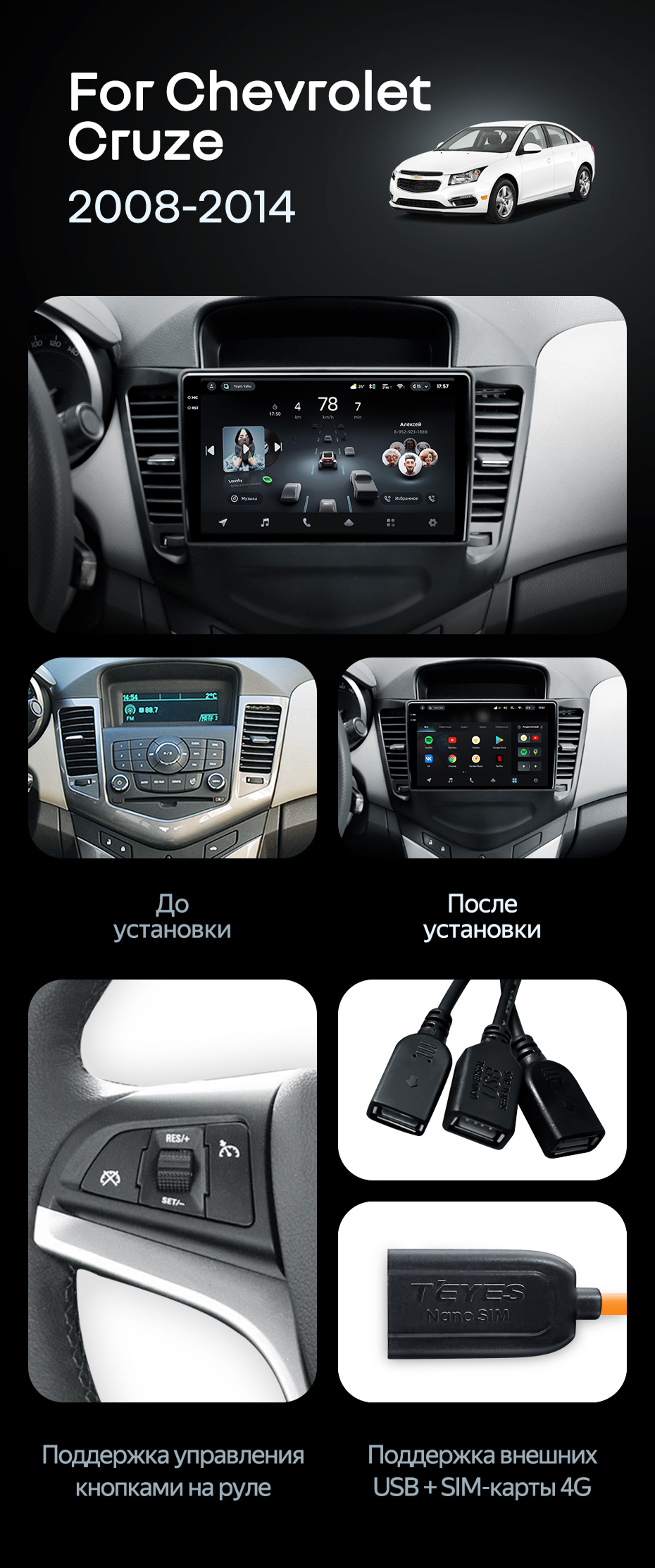 Штатная магнитола Teyes CC4 6/64 Chevrolet Cruze J300 (2008-2014) - купить всего за 48 050 руб. в интернет-магазине в Ставрополе Teyes.com.ru. ✓ Самый лучший выбор мультимедиа ✓ Лучшая замена штатному ГУ ✓ Тел. +7 (800) 775-31-74