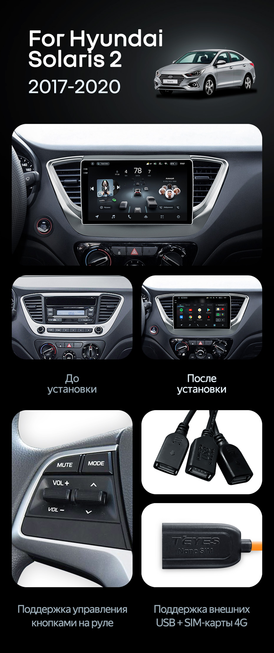 Штатная магнитола Teyes CC4 6/64 Hyundai Solaris 2 (2017-2020) F1 Тип-A - купить всего за 47 280 руб. в интернет-магазине в Ставрополе Teyes.com.ru. ✓ Самый лучший выбор мультимедиа ✓ Лучшая замена штатному ГУ ✓ Тел. +7 (800) 775-31-74
