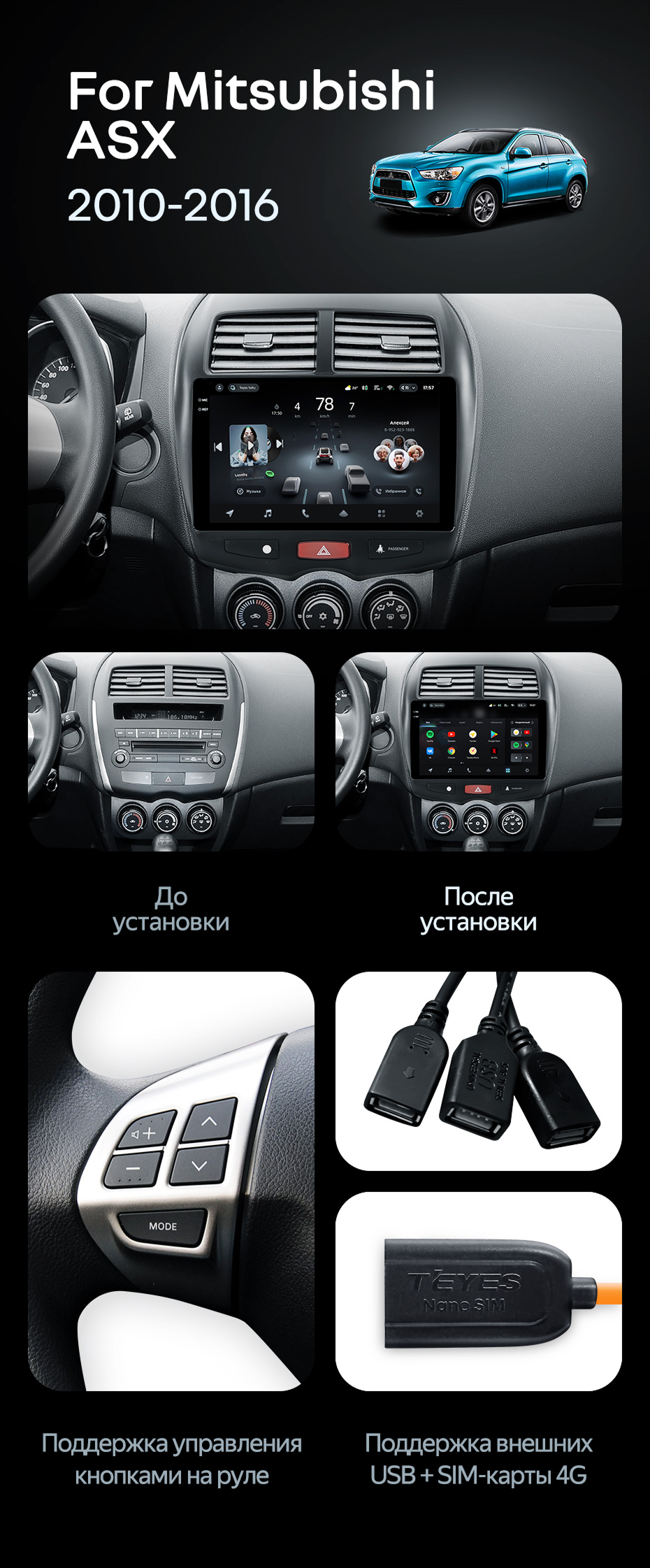 Штатная магнитола Teyes CC4 Pro 8/128 Mitsubishi ASX 1 (2010-2016) Тип-A - купить всего за 57 990 руб. в интернет-магазине в Ставрополе Teyes.com.ru. ✓ Самый лучший выбор мультимедиа ✓ Лучшая замена штатному ГУ ✓ Тел. +7 (800) 775-31-74