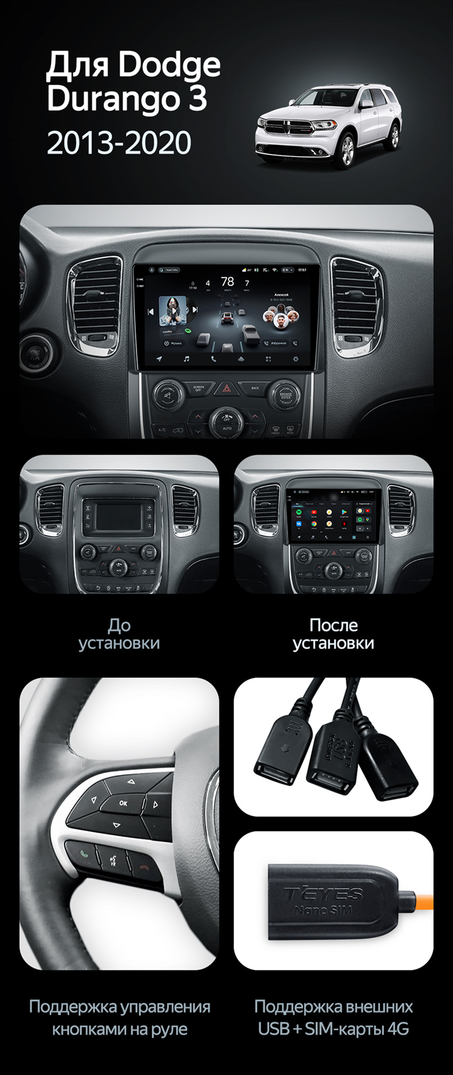 Штатная магнитола Teyes CC4L 6/64 Dodge Durango 3 (2013-2020) - купить всего за 33 300 руб. в интернет-магазине в Ставрополе Teyes.com.ru. ✓ Самый лучший выбор мультимедиа ✓ Лучшая замена штатному ГУ ✓ Тел. +7 (800) 775-31-74