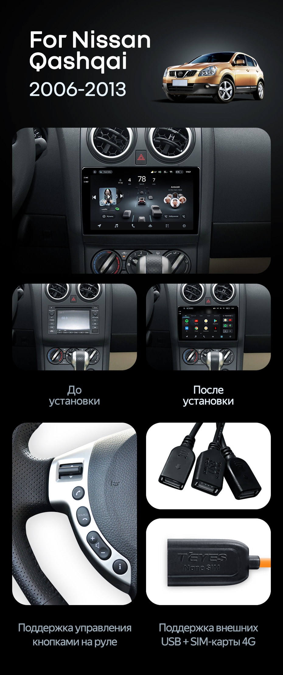 Штатная магнитола Teyes CC4L 6/64 Nissan Qashqai 1 J10 (2006-2013) F1 - купить всего за 30 500 руб. в интернет-магазине в Ставрополе Teyes.com.ru. ✓ Самый лучший выбор мультимедиа ✓ Лучшая замена штатному ГУ ✓ Тел. +7 (800) 775-31-74
