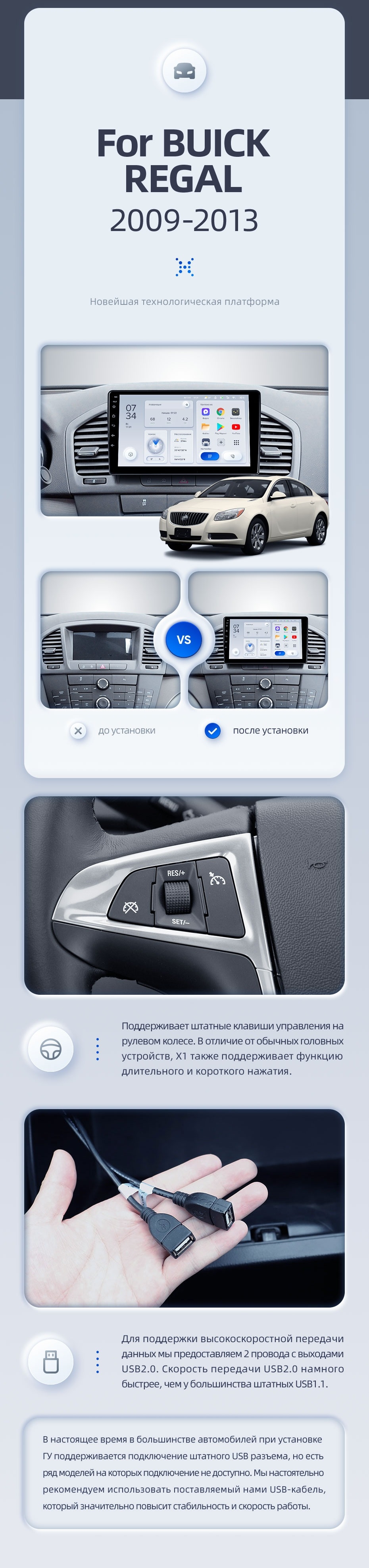 | USB | 3×USB 2.0 + USB 3.0 | Доп. аксессуары | Передняя/задняя AHD-камера, DVR-регистратор, TPMS, парковочный OBD, Type-C → HDMI |