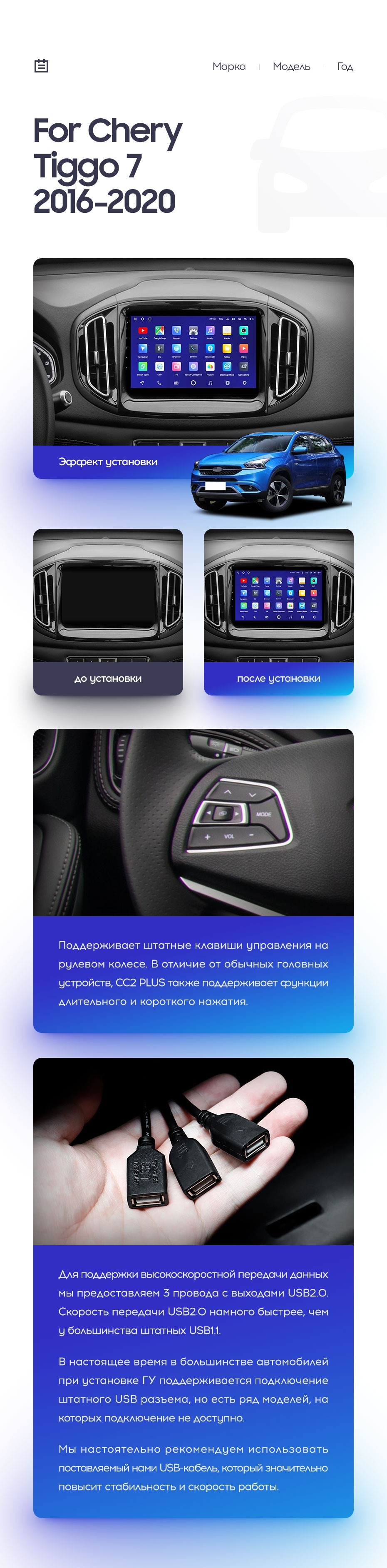 Полный комплект установки магнитолы Teyes с рамкой и проводкой можно выбрать в каталоге штатных магнитол Chery Tiggo 7 (2016-2020).