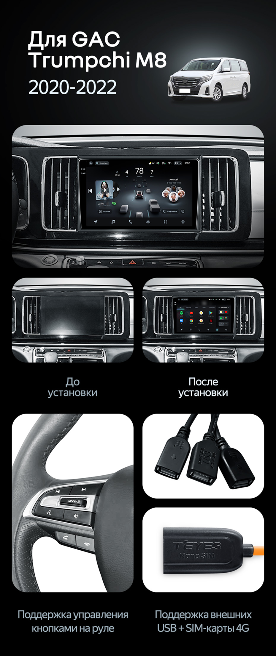 Переходная рамка GAC Trumpchi M8 (2020-2022) (10") - купить всего за 5 400 руб. в интернет-магазине в Ставрополе Teyes.com.ru. ✓ Самый лучший выбор мультимедиа ✓ Лучшая замена штатному ГУ ✓ Тел. +7 (800) 775-31-74