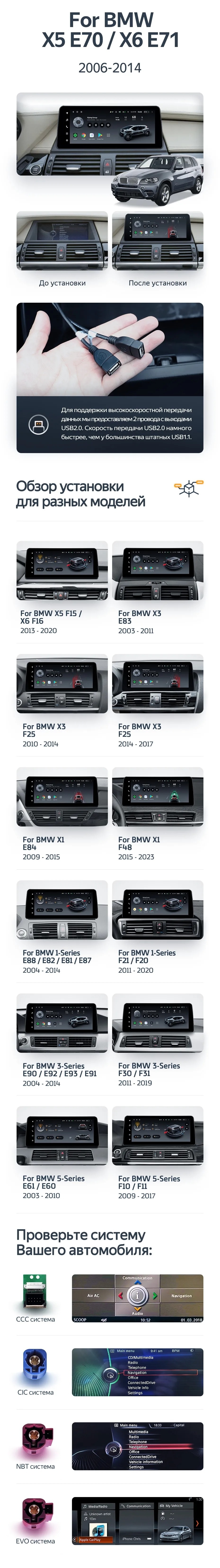 Установочный комплект для BMW 2-Series Active Tourer F45 (EVO) (2014-2018) включает переходную рамку и проводку.